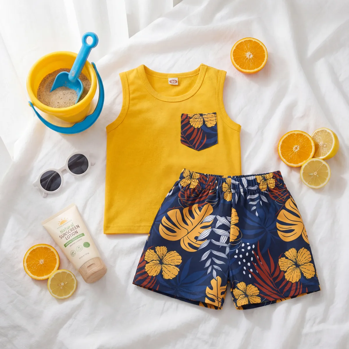 Conjunto Playero Con Bolsillo Estampado Para Niños